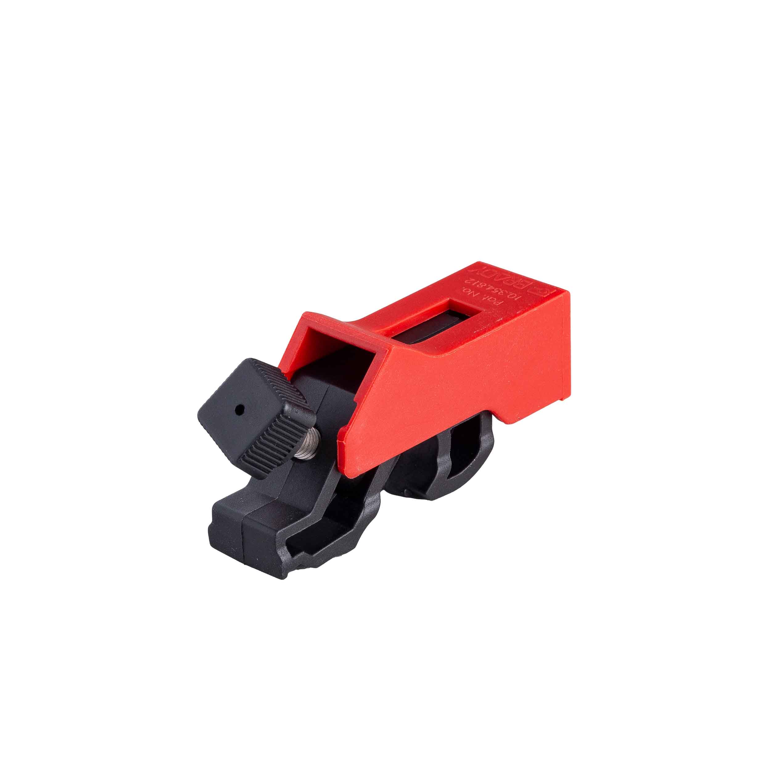 Bloqueio elétrico disjuntor universal 7–15 mm usado para travar disjuntores de diversas larguras.